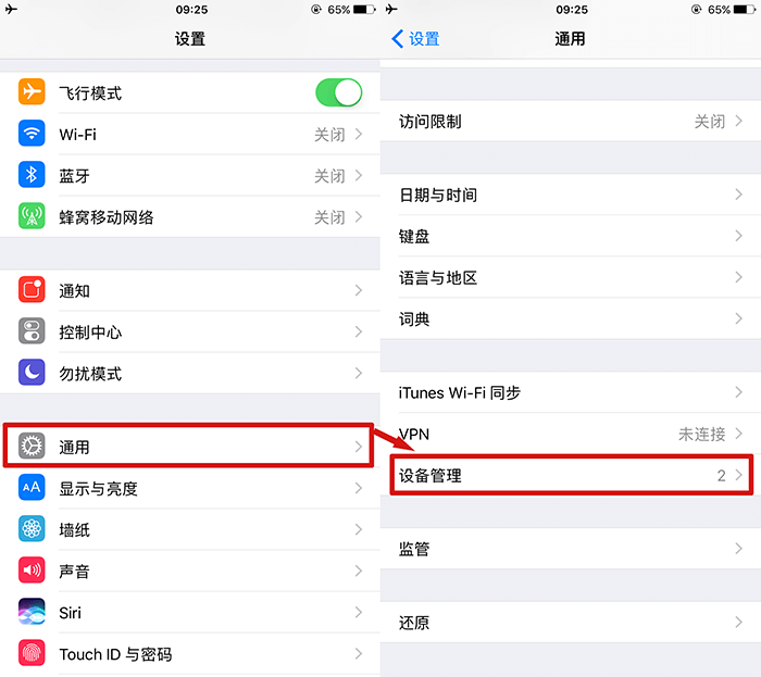 第二步、点击设置,然后在里面找到通用,如图点击通用,在点击描述文件或设备管理;