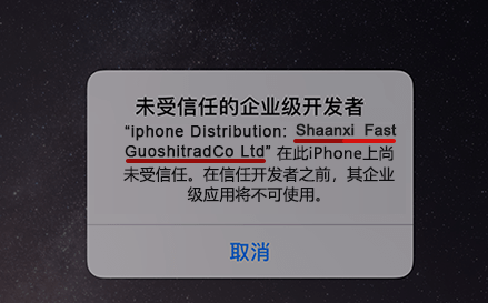 第一步、点击App,若是未受信任的开发者,认识该证书名称;